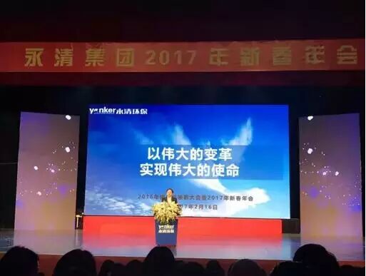 在结束我的致辞的时候,我想再重复一下,我的一个感悟。这段话是这样的:当你老了的时候,回顾你这一生你干了什么,你为这个社会做了什么,或者说你为这个社会留下的口碑是什么?我想我们全体永清人是非常幸运的,因为我们从事的是太阳底下最阳光的职业,我们驱逐雾霾,洁净土地和河流,我们为子孙后代造福。我们为生活在地球的人类创造价值,每一天我们用我们的智慧,换取我们生活必需的物质和条件,每天早上起床就意味着有价值的一天的开启。在这样一个幸福和伟大的时代,我们要以家国天下的广阔胸怀,建设美丽中国,为天下人创造碧水蓝天绿地。我们要始终有这样的情怀,不忘初心,砥砺前行。